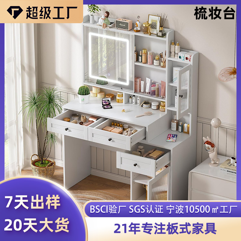 AmazonベストセラーL字型ドレッシングテーブルクリームスタイルシンプルな収納キャビネットベッドサイドテーブル一体型コーナーボックスドレッシングテーブル