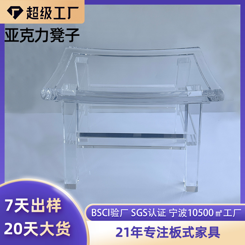 寧波アクリルスツール、図面とサンプルによるカスタマイズ、プレキシガラスロースツール、高精細透明スクエアスツール