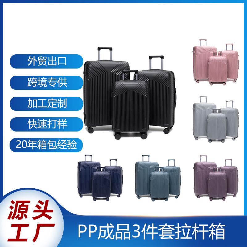 国境を越えたPP素材のトロリーケース完成品3点スーツケース工場直販カスタマイズ対応