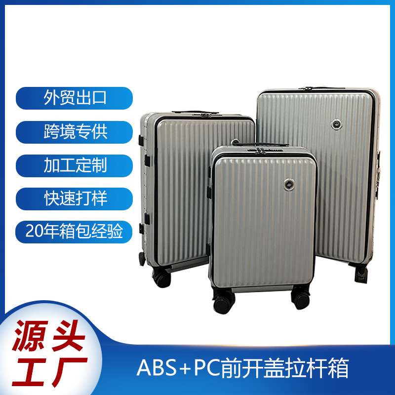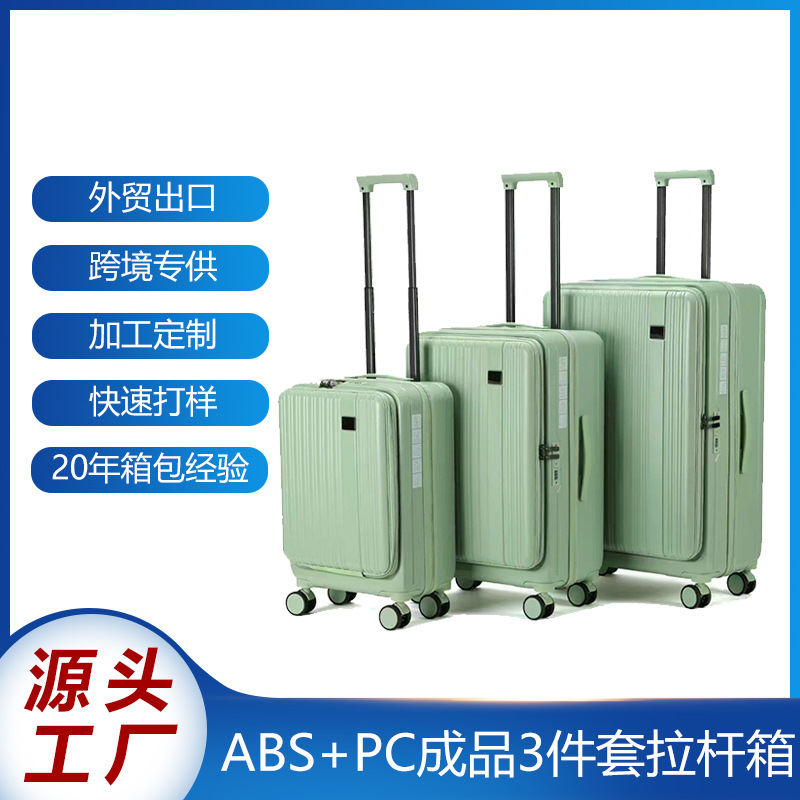 国境を越えた新しい多機能フロントオープン蓋ファッショナブルなトロリーケース厚みのあるフラットフレームサイドオープンスーツケースはロゴでカバーできます
