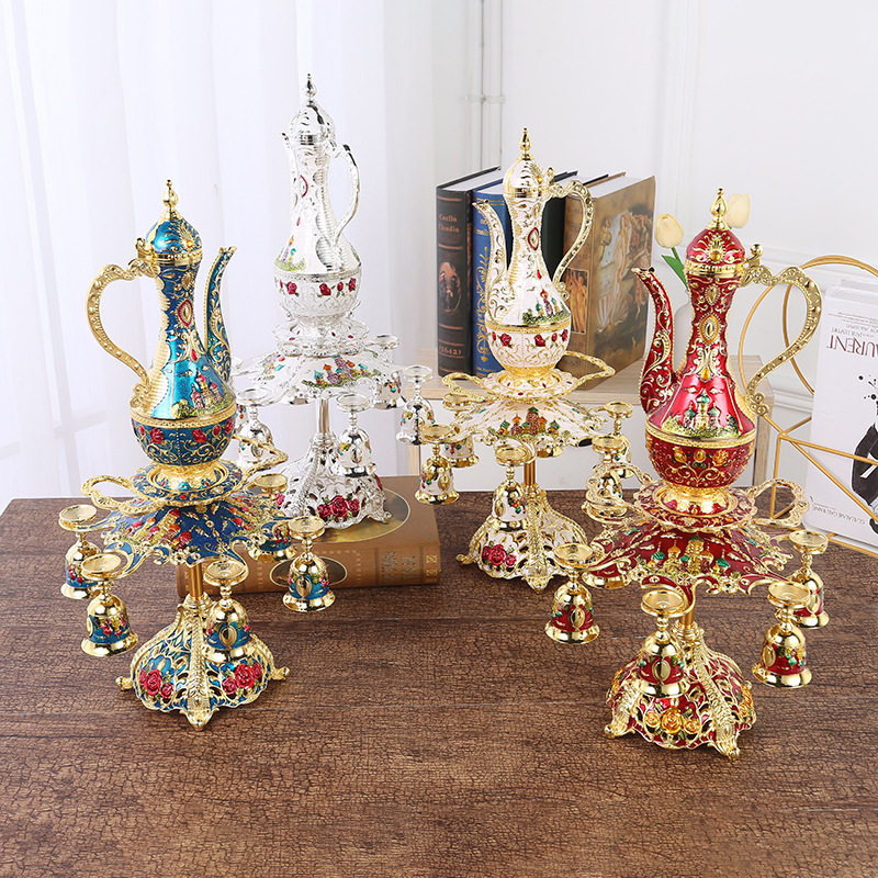 ヨーロッパ式の軽くて豪華なレトロな酒のセットは優雅で精巧な中古風の杯の酒の壺の宴会の祝日の酒の壺の卸売りです。