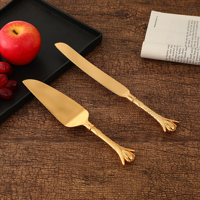 美しいシャベルセット洋食ケーキ食器金色高級デスクトップ装飾アイデア花柄ハンドル合金刃物