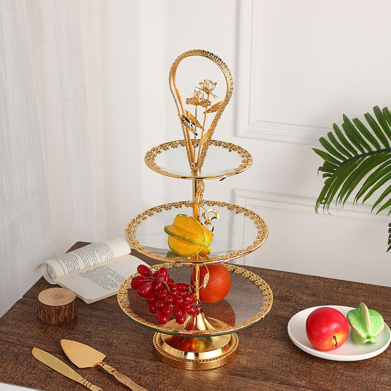 ヨーロッパ式の古典的な軽い豪華な果物の皿の高級なホテルのアイデアの多層ガラスのトレーのキャンディーの皿のお菓子の皿の置物