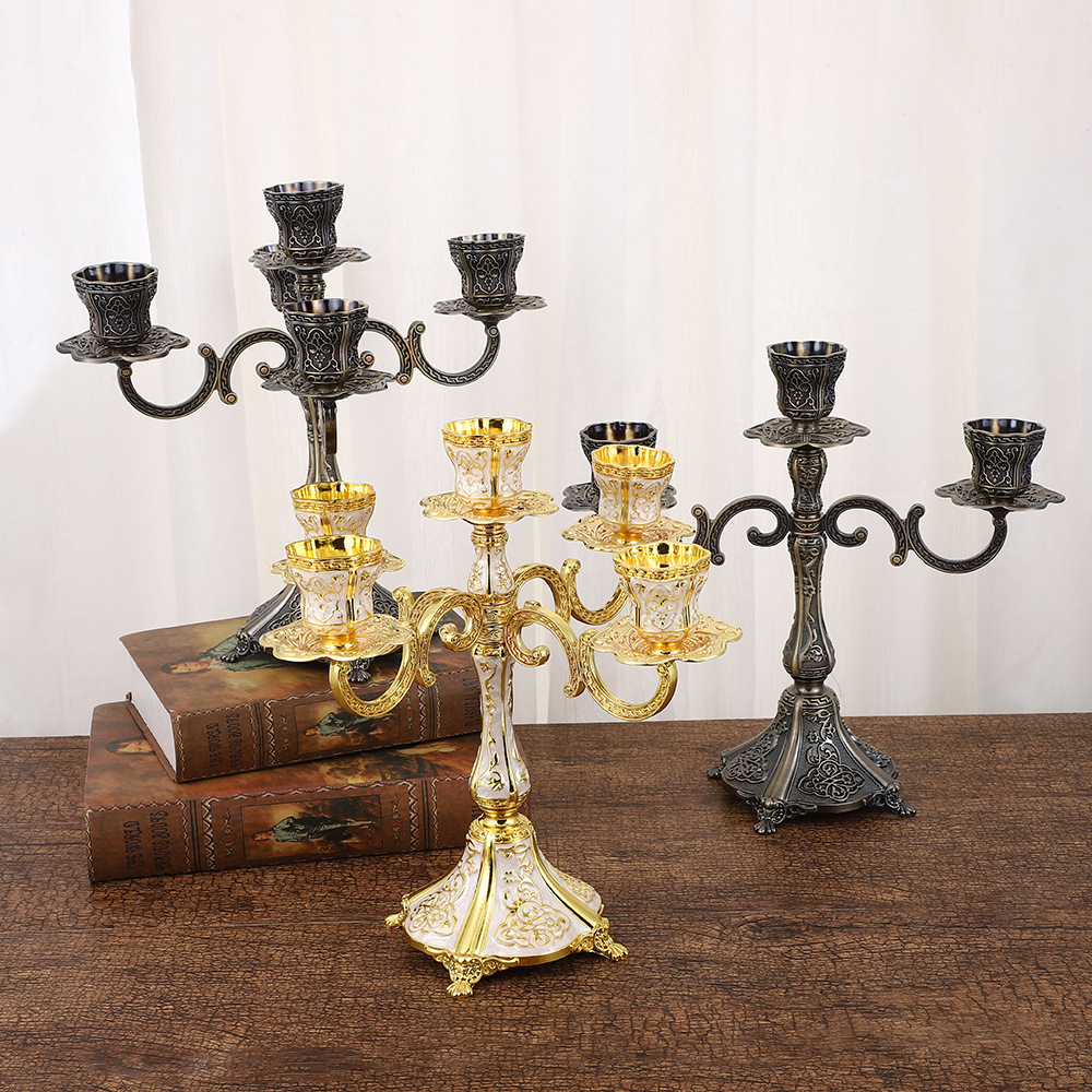 メーカーの新しいヨーロッパのレトロな亜鉛合金のろうそくの台はホテルの家庭の工芸品のろうそくの台の現物を並べます。