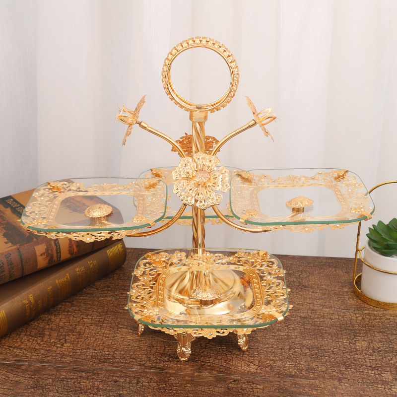 軽豪華風創意家庭用客間ホテル茶何水晶果物皿強化ガラス多層ヨーロッパ風果物皿卸売り