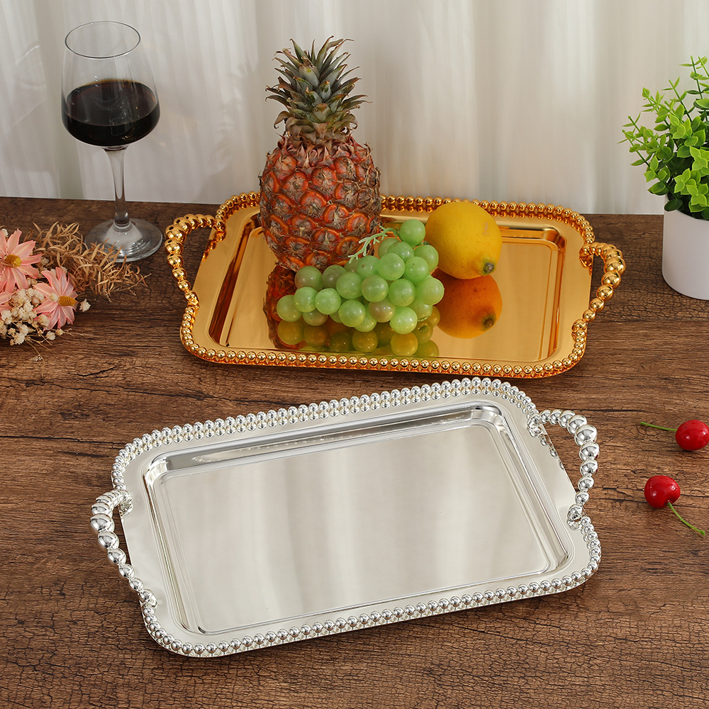 ヨーロッパの新しいトレーの置物の金属の銀の玉は四角形のトレーの果物の皿を飾ってケーキの皿のKTV用品を焼きます。