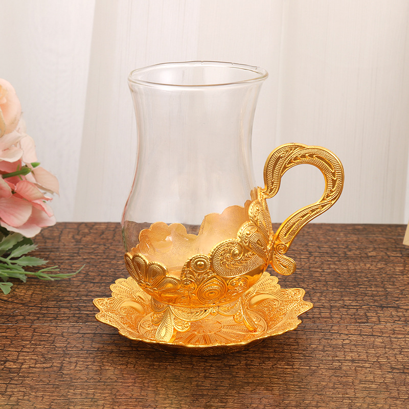 新型金属亜鉛合金ガラスコップヨーロッパ風ティーカップセット
