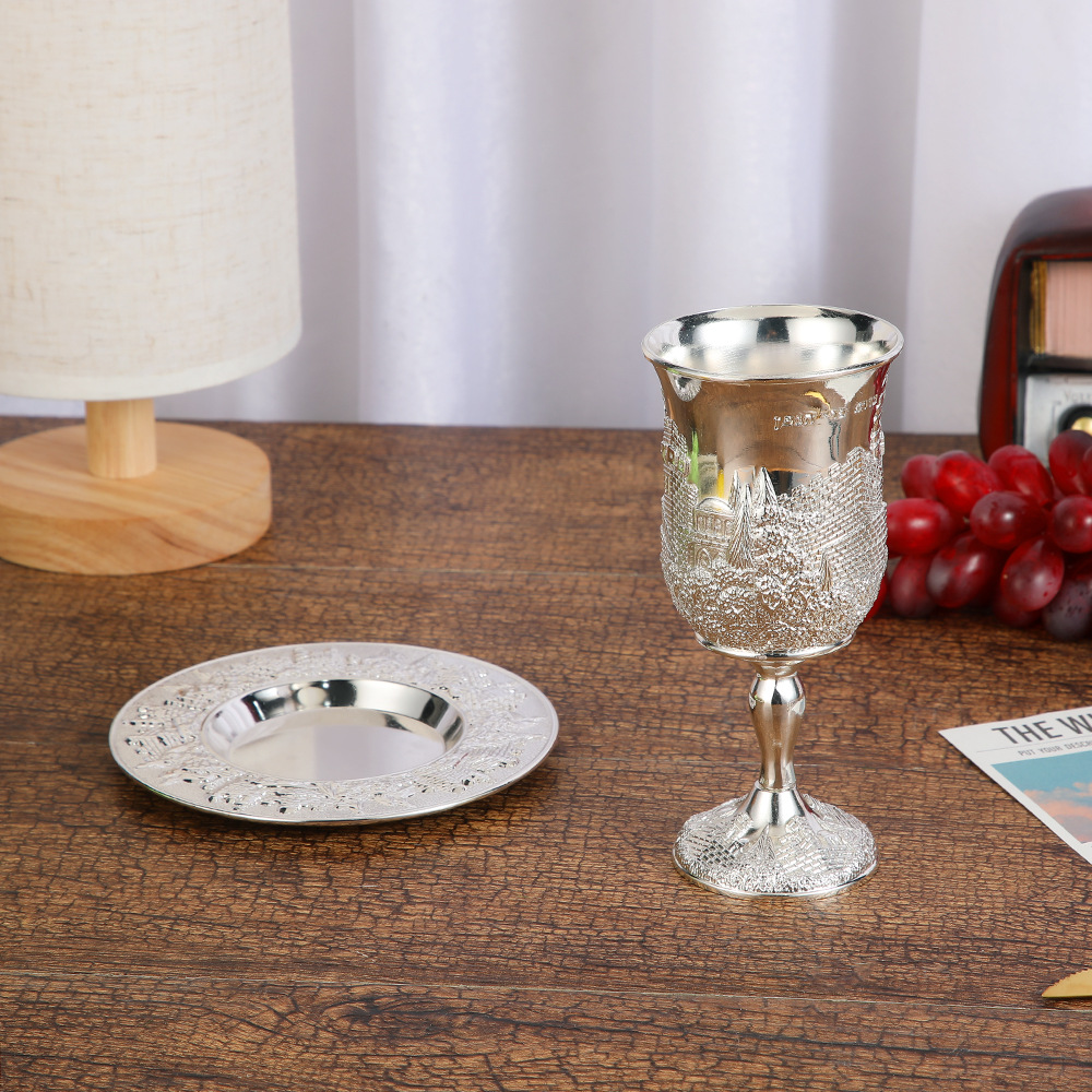 ヨーロッパ式高級白杯創意家庭用金属一口杯杯杯杯杯皿セットレトロ高足杯プレゼント