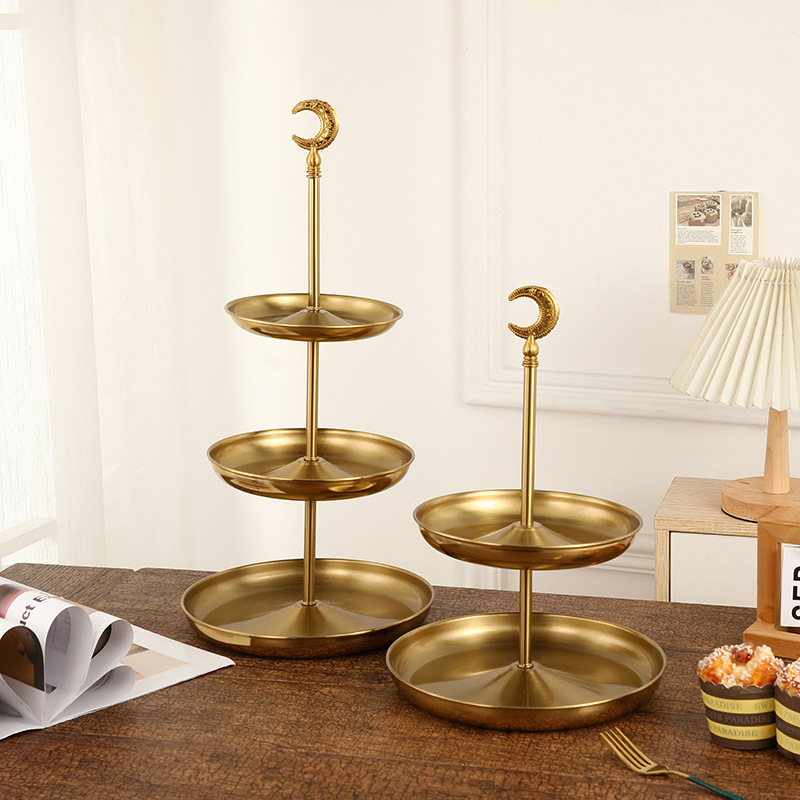 ヨーロッパ式の軽い豪華な多層の鉄芸の果物の皿の家庭の客間のお茶のいくつかの置物のネットの赤い果物のお菓子のナッツの収納皿