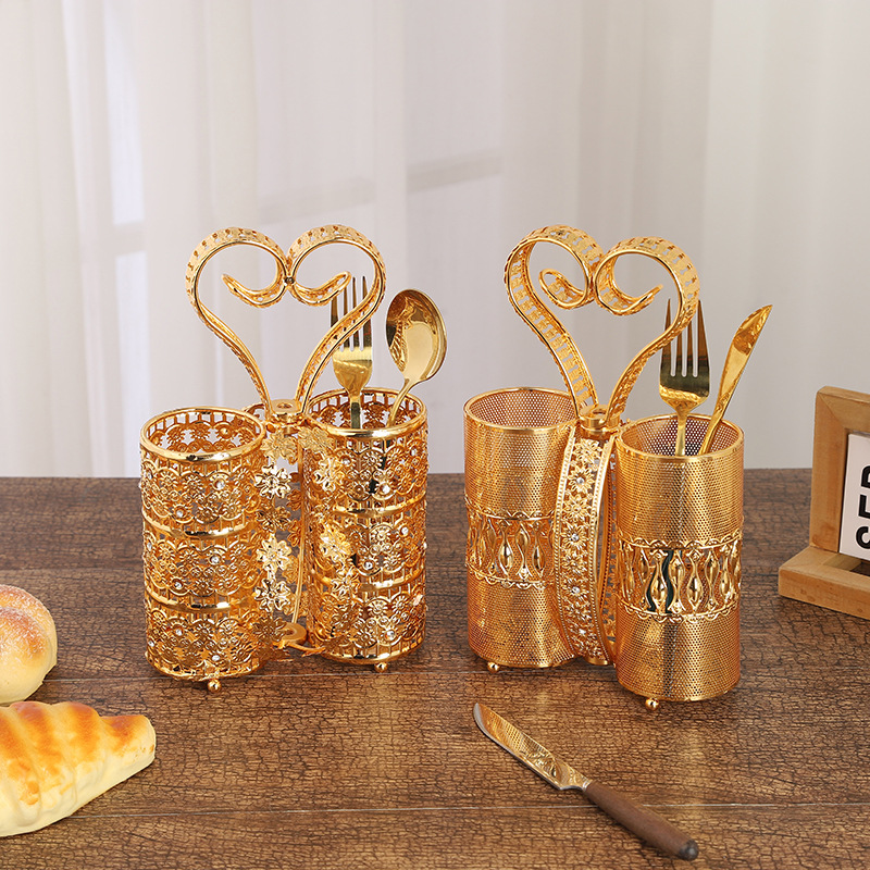 ヨーロッパ式の軽い豪華な鉄の芸の透かし彫りの箸の棚の家庭用の壁掛け式の水切りの箸のかごの台所の食器は箸のかごを収納します。