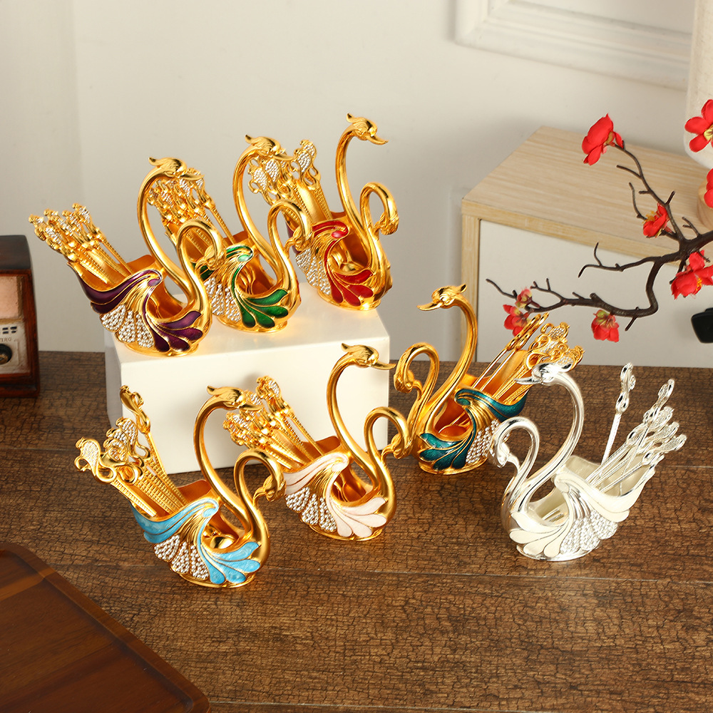 ヨーロッパ式の軽い豪華なダイヤモンドの白鳥のスプーンの棚の台所のスープのフォークのセットの古典的なアイデアの洋食のスプーンの食器