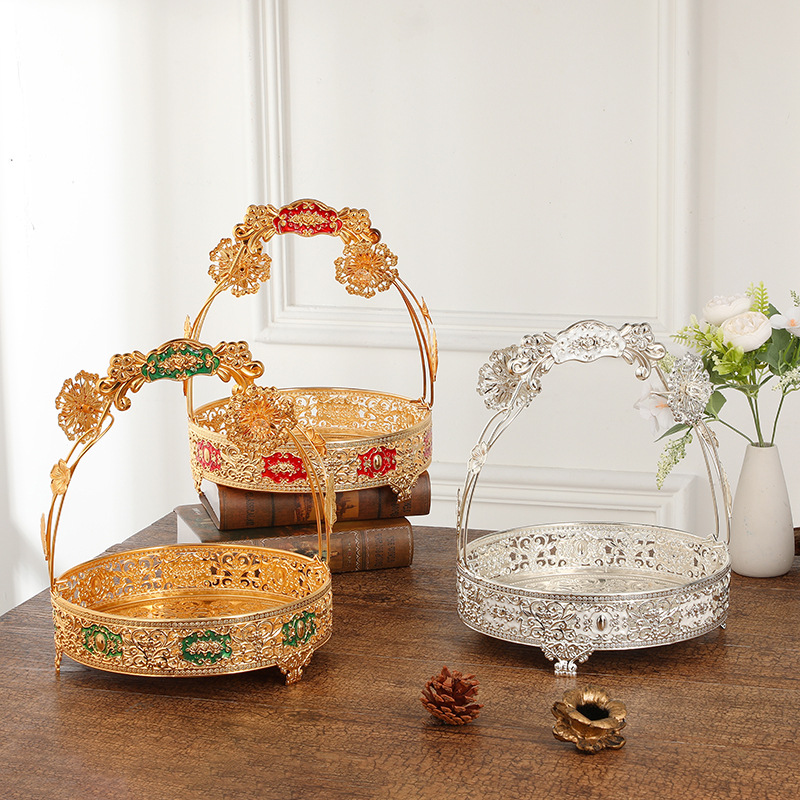 ヨーロッパ式レトロ軽豪華円形バスケットホテルのフロントフルーツバスケット装飾高級感家庭用手提げバスケット置物
