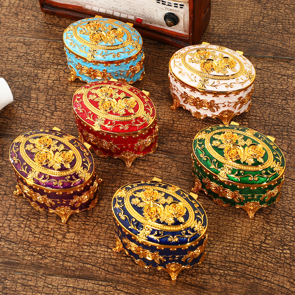 ヨーロッパ式のバラのアクセサリーの箱の復古の軽い豪華な宝石のアクセサリーの箱の置物のエナメルの色の化粧台の金属の収納の箱