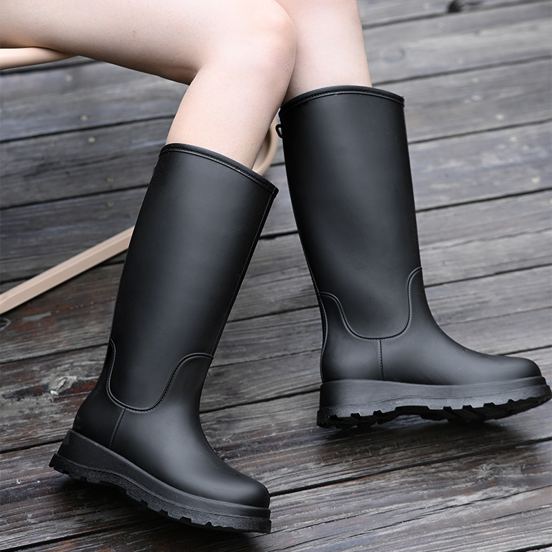 女性用ハイチューブレインブーツ 2024 新しい四季防水滑り止めアウトドアウェアファッショナブルなミッドハイチューブラバーシューズレインブーツ LFY