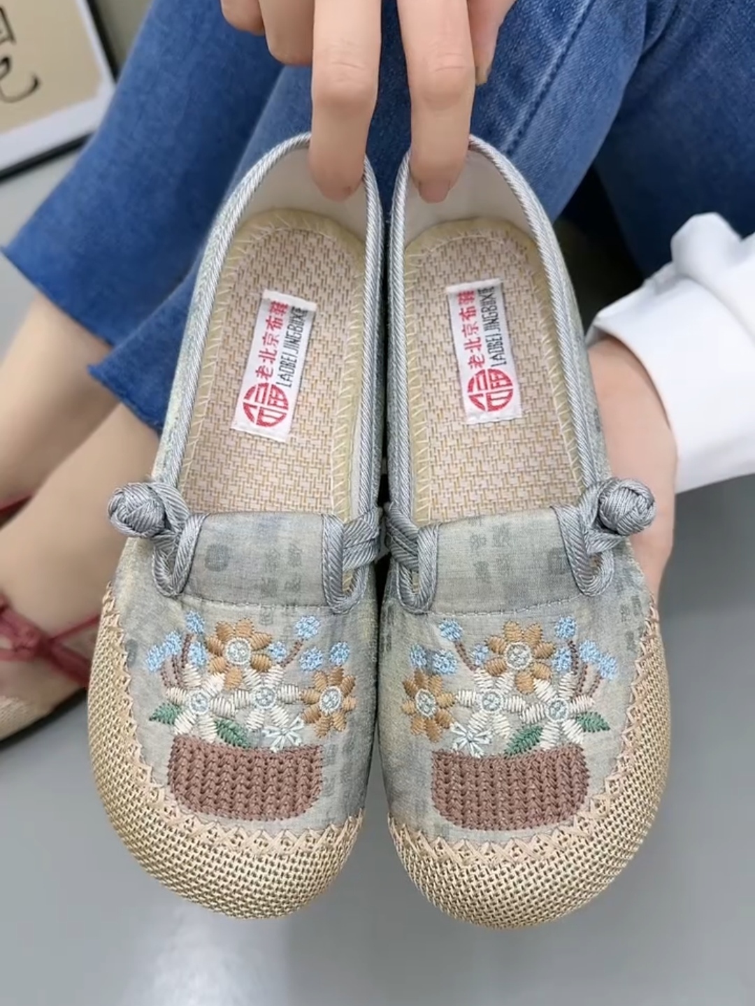 2025 新しい古い北京布靴女性のエスニックスタイル刺繍ママの靴ソフトソール軽量中国風漁師の靴女性