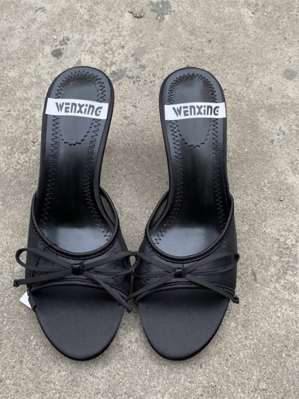 スペインの2024年新作夏スタイル、オープントゥメッシュリボンアウターサンダル、スティレットヒール、万能ハイヒール