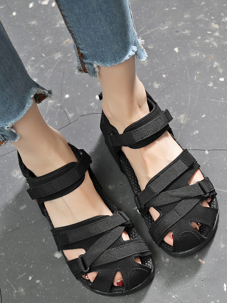 学生スポーツレディースサンダル包頭韓国風トレンディなアウターウェア滑り止めマタニティ大きいサイズワイドフットローマンフラットビーチシューズ