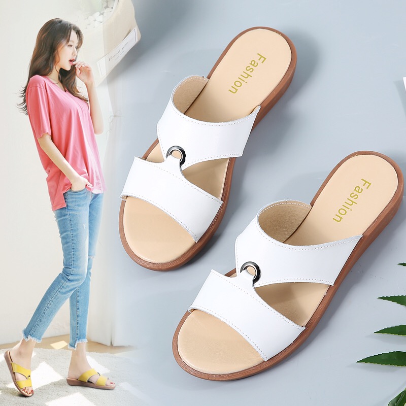 本物の牛革牛腱底滑り止めスリッパ女性サンダル妊婦アウターフラットヒールスリッパフラット女性サンダル