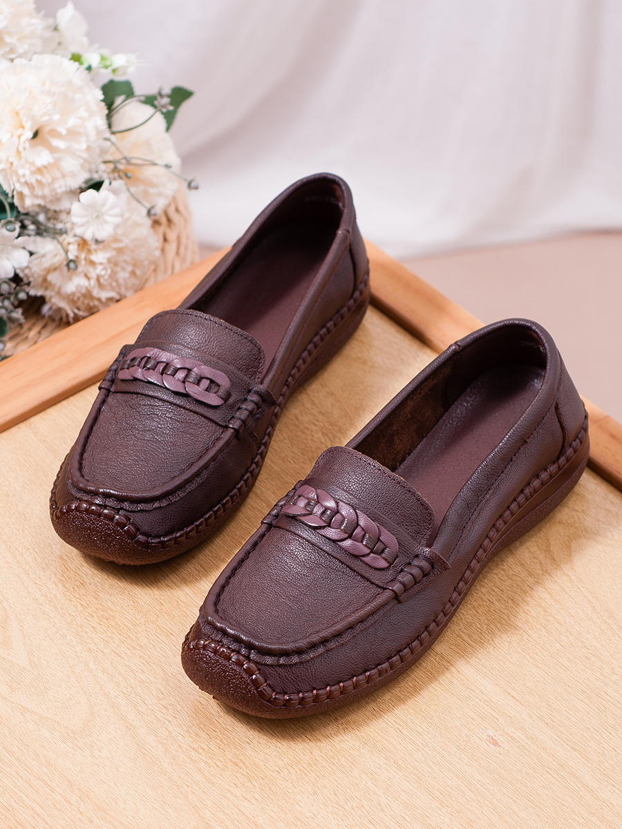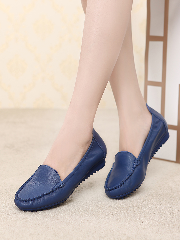 ママシューズ、ビーニーシューズ、超ソフトフラット春夏中年ソフトソールワイドレザーシューズ、カジュアルシューズ、滑り止め