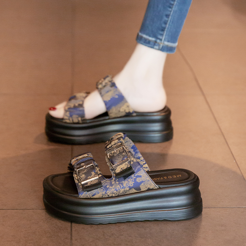 厚底サンダル女性の夏のアウターウェア 2025 新しいファッションプラットフォームスリッパカジュアルビーチシューズ