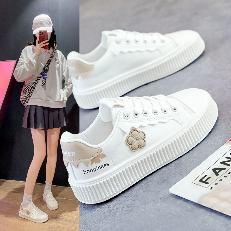 白靴の女性靴2025春の新型春秋百合ins潮小衆運動レジャー厚い底板靴の靴