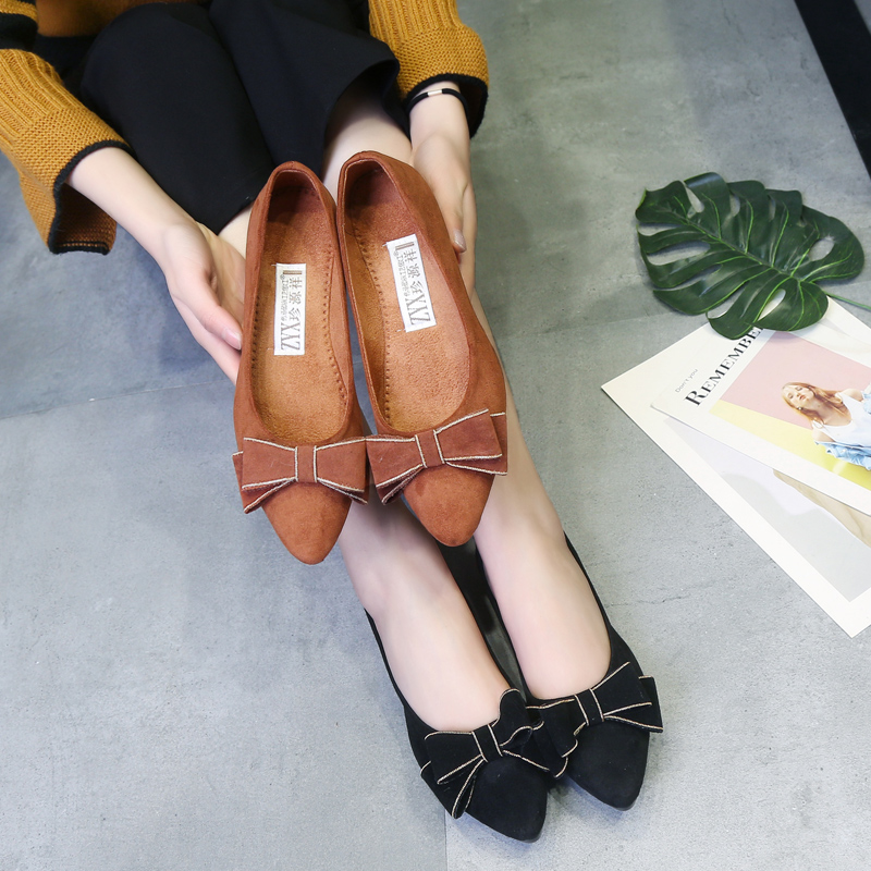 春の新型の女性靴の蝶結びの平と浅い口の先の靴の女性の古い北京の布の靴の平底の靴の女性の仕事の靴
