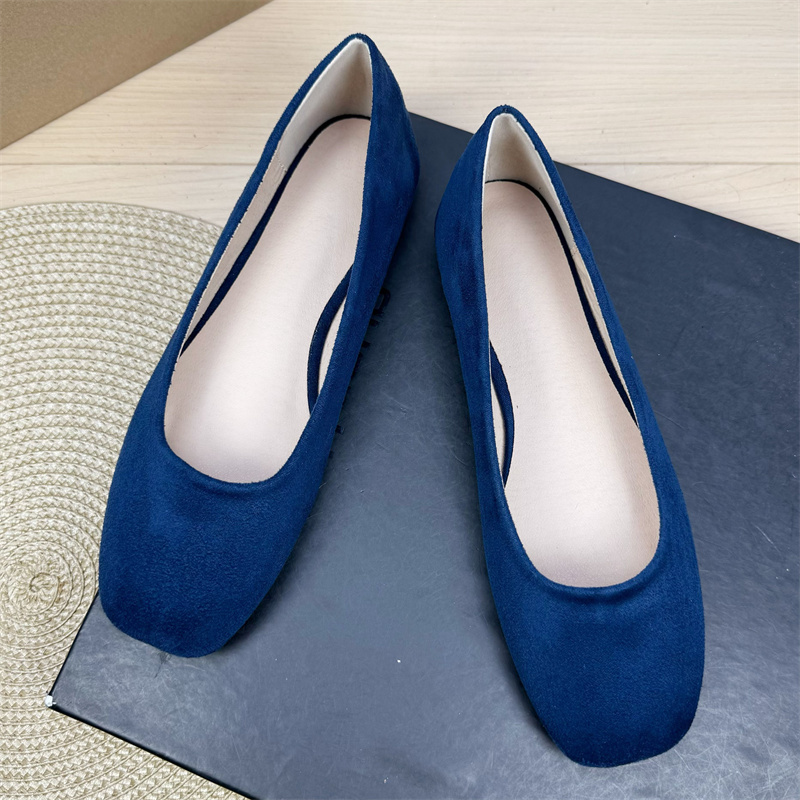 ベルベットの四角い口の浅い靴の女性靴2025年春の新しい足で豆ミルク靴を漕ぐ