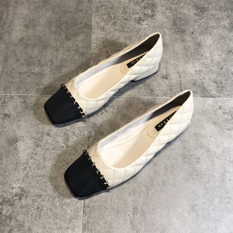 靴の女性2025年の新型の女性靴の春のタイプの小さい香ばしい風の靴の女性の太さと百合の浅い口の低い靴のアンドロメダ