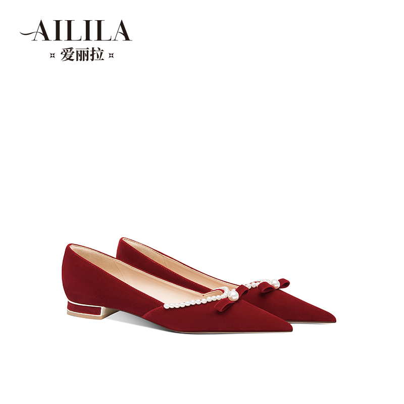 エリラの赤い花と秀禾の服の絶美の結婚靴の女性の平底2025新型の春の花嫁の靴は疲れません。