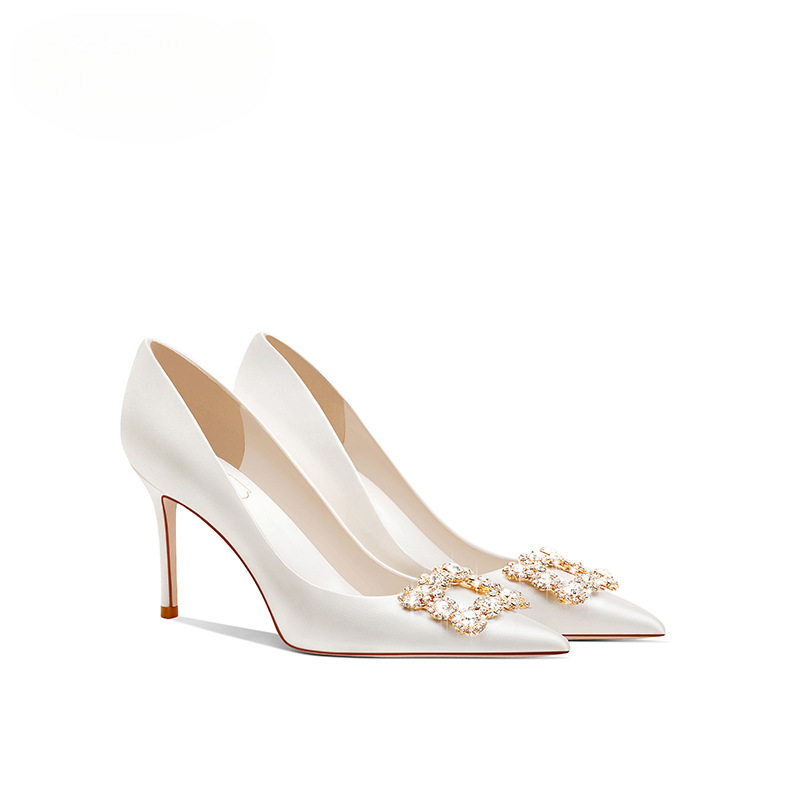 エリラのサテンの水晶の結婚靴の女性2025新型の春の花嫁の主なウェディングドレスの白いハイヒールは疲れません。