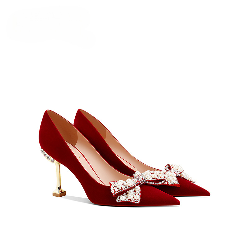 エリラの赤い秀禾の服の結婚靴の女性2025の新型の春の中国式の新婦の水晶の靴は疲れません足の高級感