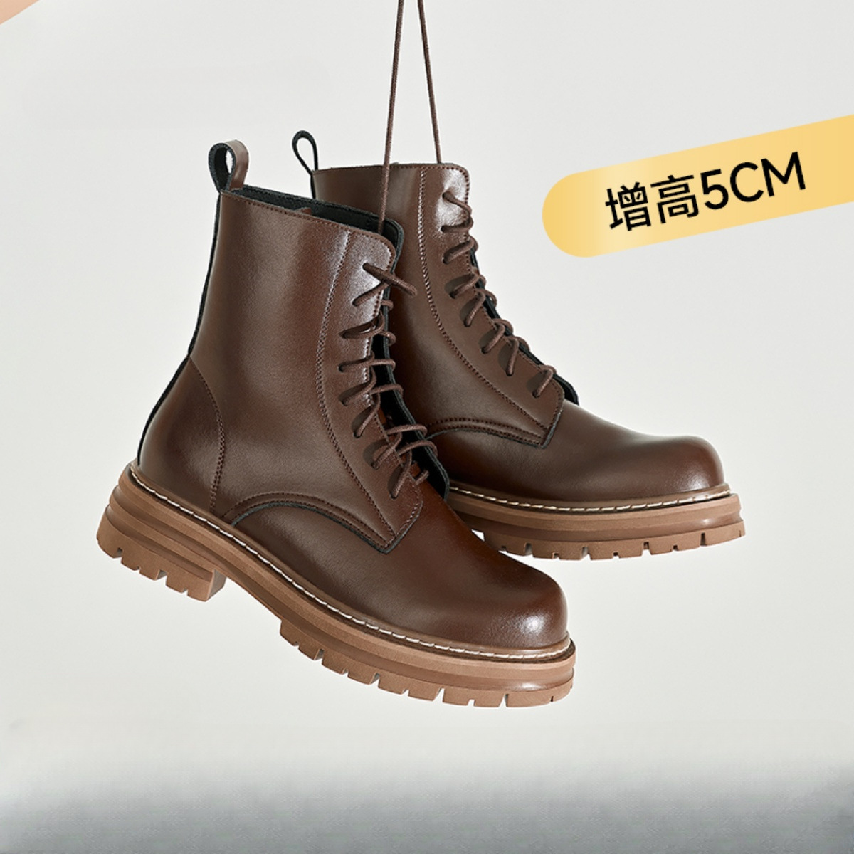 PM厚い底の茶色のマーティンブーツの女性は2025年の春の新型の英倫風のショートブーツの本革が高くなります。