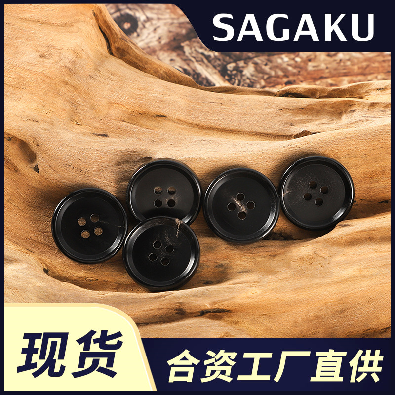Hn0563牛角ボタン男性女性コートコート黒四眼ボタンスーツ逸品ボタン卸売り