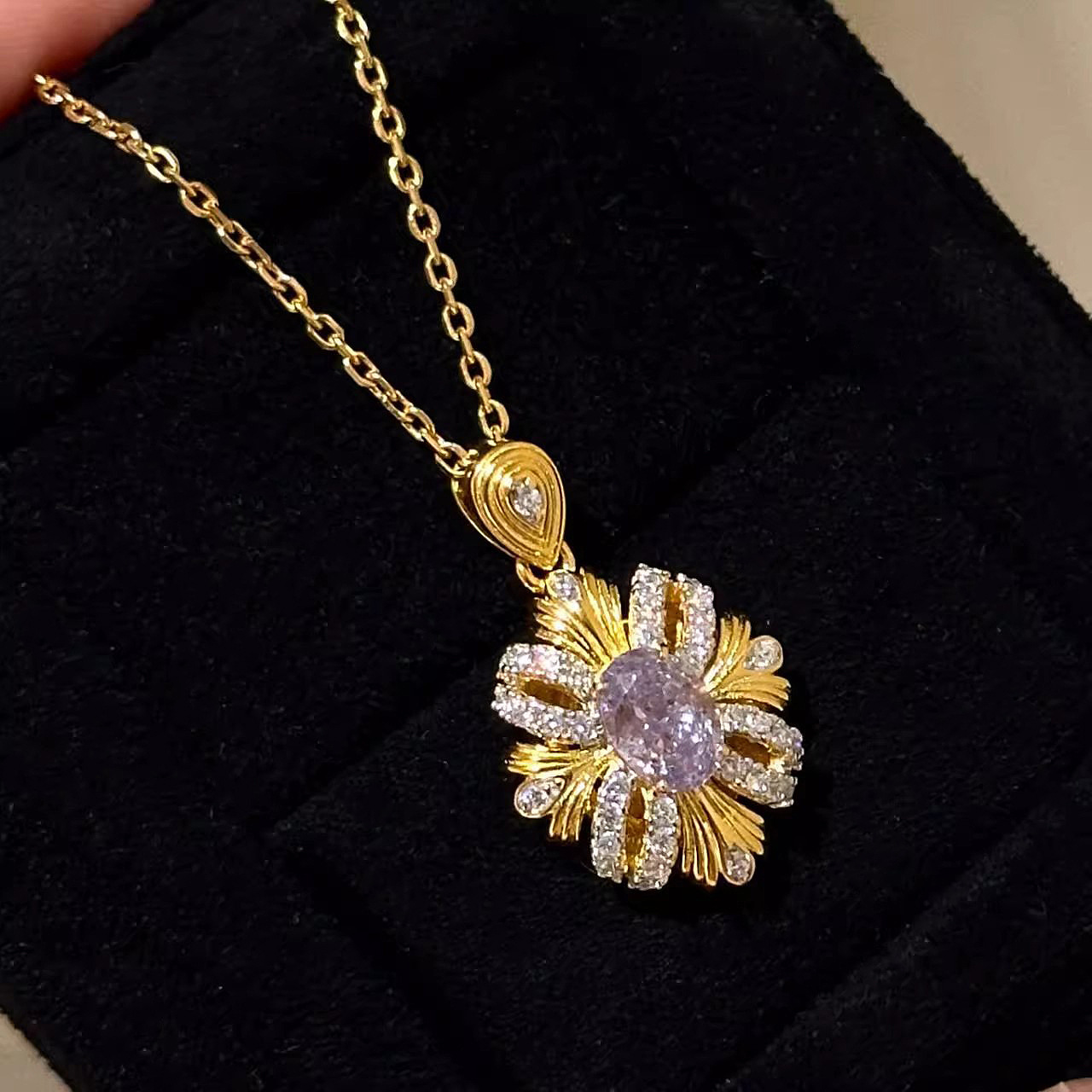 太陽の花の紫荊花のネックレス2025の新型のフランス式の復古のチタンの鋼は色を落とさないで鎖の鎖の卸売りをします。