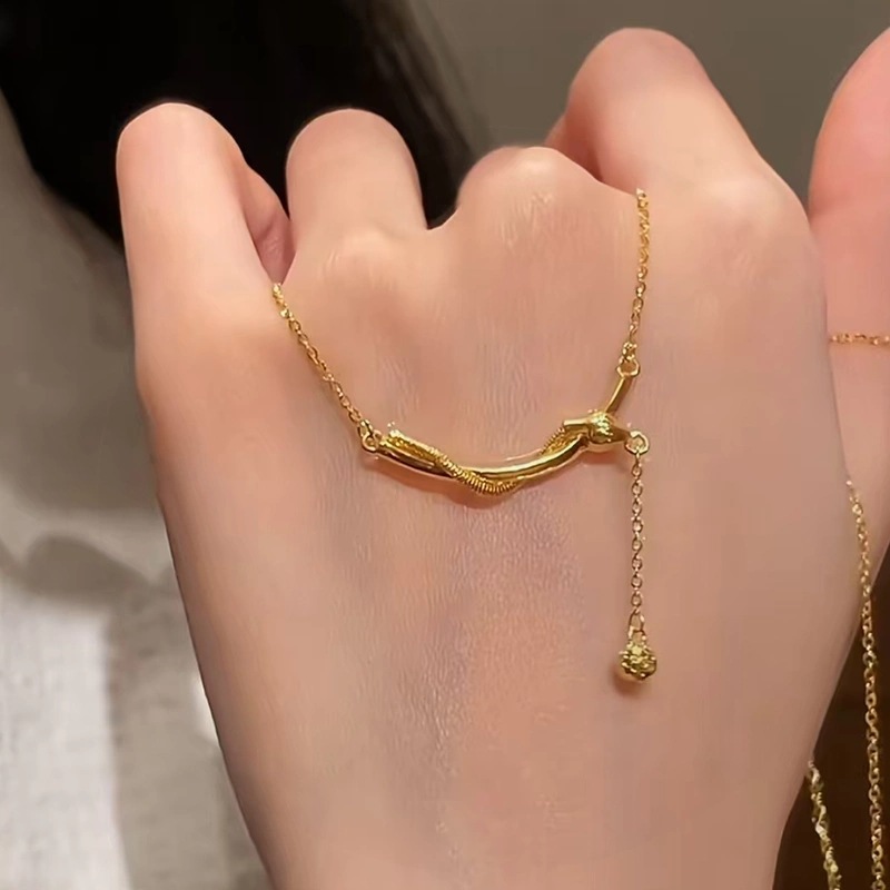 金色中国式四葉草ペンダントネックレス2025新型レトロ高級感軽量豪華チタン鋼は色を落とさない鎖骨鎖