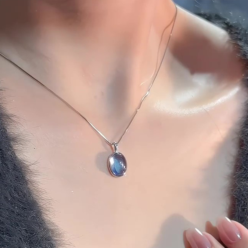 海藍宝月光石ネックレス2025新型軽豪華高級フランスチタン鋼は色を落とさない鎖骨チェーンアクセサリー卸売り