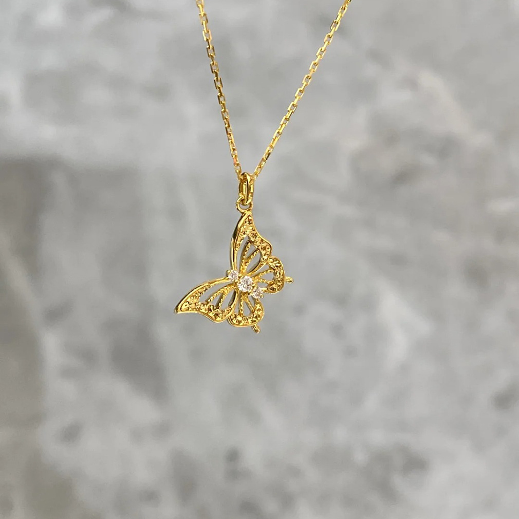 金色のドリルの透かし彫りの蝶のネックレス2025新型の軽くて豪華な気質の高級なチタンの鋼は色を落とさないで鎖のチェーンの装飾品です。