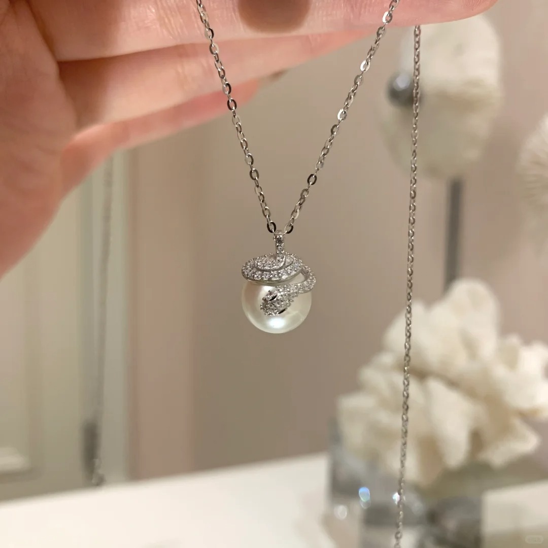 霊蛇抱珠ネックレス女2025新型軽豪華で洗練された高級感チタン鋼は色を落とさない鎖骨チェーンアクセサリー卸売り