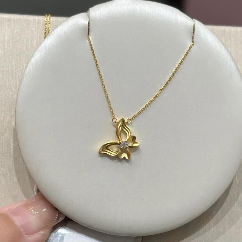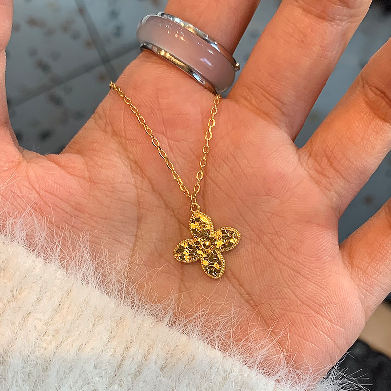 金色の透かし彫りキラキラ蝶のネックレス2025新型軽豪華気質小衆設計チタン鋼は色を落とさない鎖