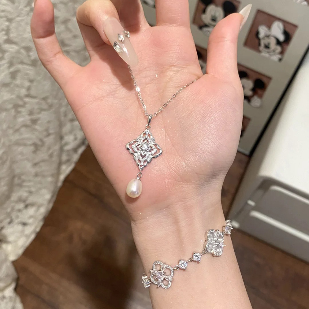 ブラッチ風レース透かし彫り真珠ペンダントネックレス2025新型イタリア式軽豪華チタン鋼は色を落とさない鎖
