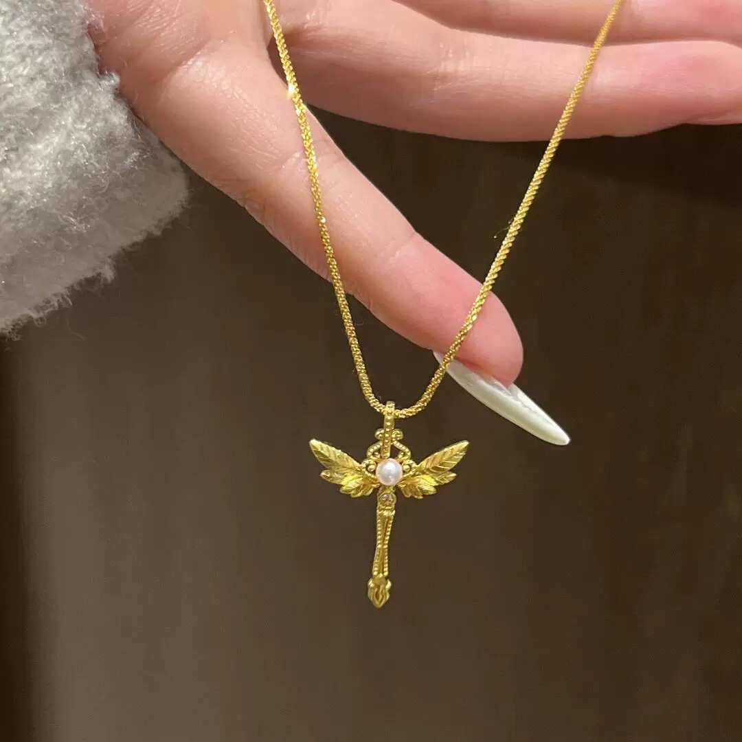 魔法少女天使の翼の杖のネックレス2025の新型の精緻で甘いチタン鋼は色を落とさないで鎖の鎖の卸売りをします。