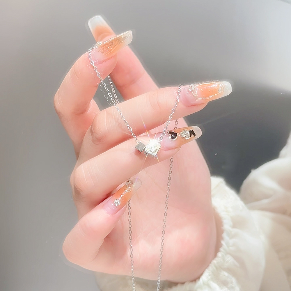 四角のネックレスの女性の軽豪華な大衆の設計は色を落とさないで鎖の骨のチェーンの2024夏の高級感のペンダントのアクセサリーの卸売りをします。