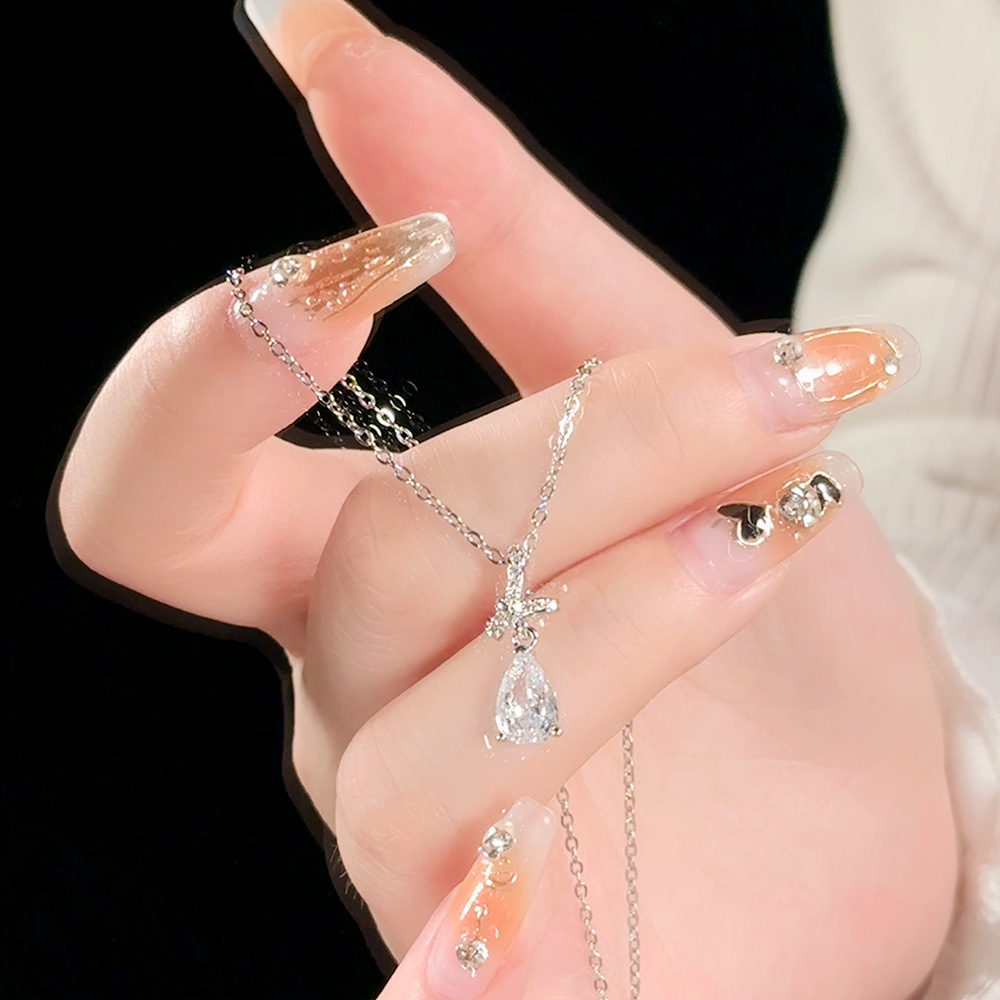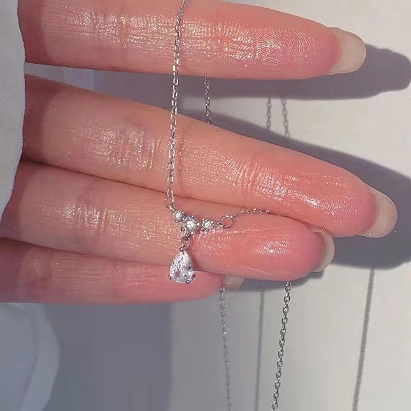 水滴のジルコンのネックレスの女性の2024新型の軽くて豪華な高級感のペンダントのチタンの鋼は色を落とさないで鎖のチェーンのアクセサリの卸売りをします。