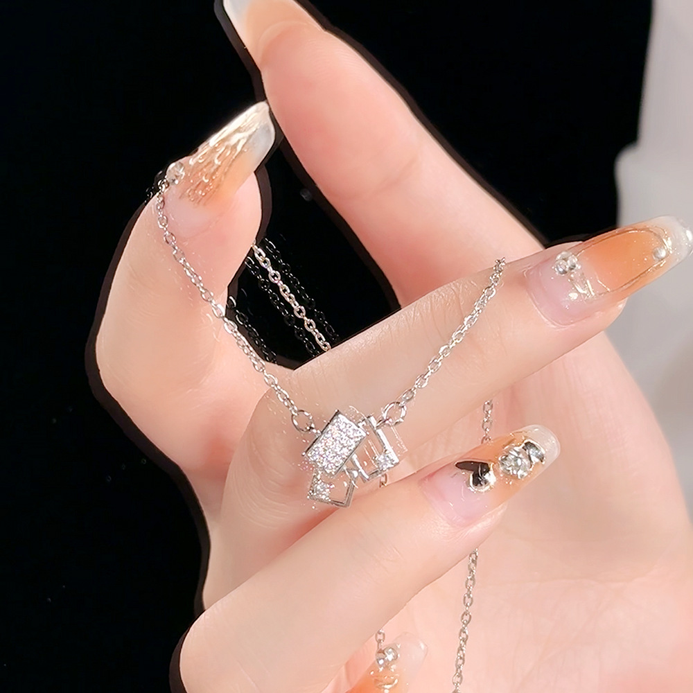 幾何学的にダイヤモンドのネックレスを入れた女性2024夏の軽豪華な森系ペンダントの高級感が落ちない鎖鎖アクセサリー卸売り