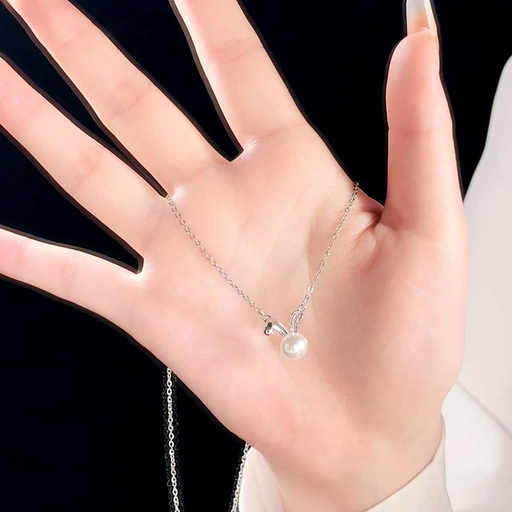 ウサギの真珠のネックレスの女性の2024の新型の軽くて豪華な高級感のペンダントのチタンの鋼は色を落とさないで鎖のチェーンのアクセサリの卸売りをします。
