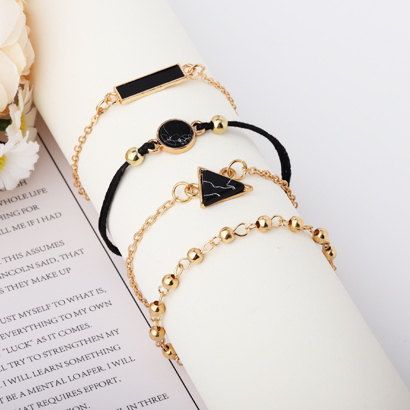 欧米の国境を越えた三角黒松石編みブレスレット黒四角金色珠ブレスレットトレンド4点セットジュエリー卸売り