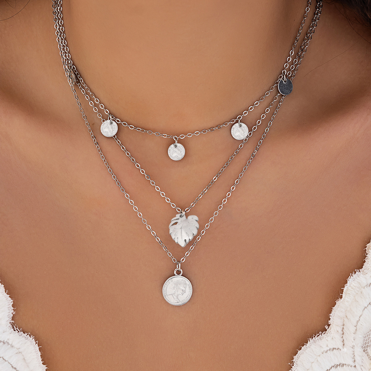 欧米のクロスボーダーのアクセサリの多層の丸い木の葉の長いネックレスの女性のファッションの復古の個性の新型のアクセサリーの卸売り