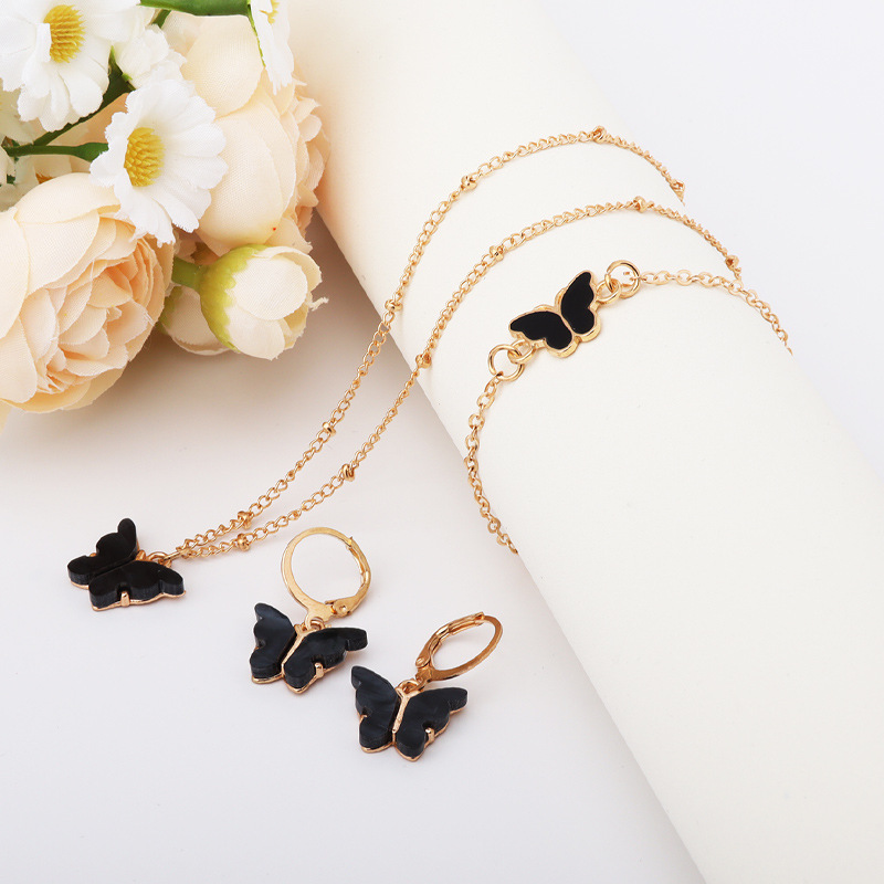 欧米の新型の蝶のアクセサリーのスーツの甘い女性の百合の鎖骨のネックレスのブレスレットのイヤリングの個性のファッションの装飾