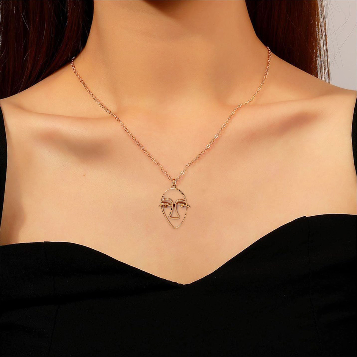 アマゾンの爆発的な不規則な顔の透かし彫りネックレス国境を越えたファッション流行合金のシンプルなスタイルの個性ネックレス