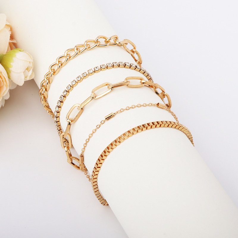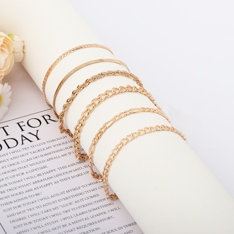 欧米国境を越えた手飾りシンプルな多層金属ブレードチェーンチェーン4点セットボヘミアンファッション層